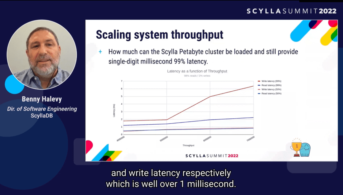 - Benny Halevy (ScyllaDB) revealed how we benchmark ScyllaDB at the petabyte level and provided tips on how you can achieve smooth and predictable performance at such monstrous scale.