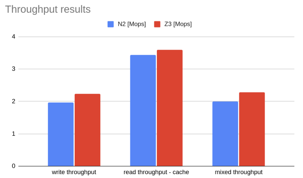We conducted a comparative analysis between the Z3 instance and the N2 memory-optimized instances. The N2 instances were our standard choice until now.