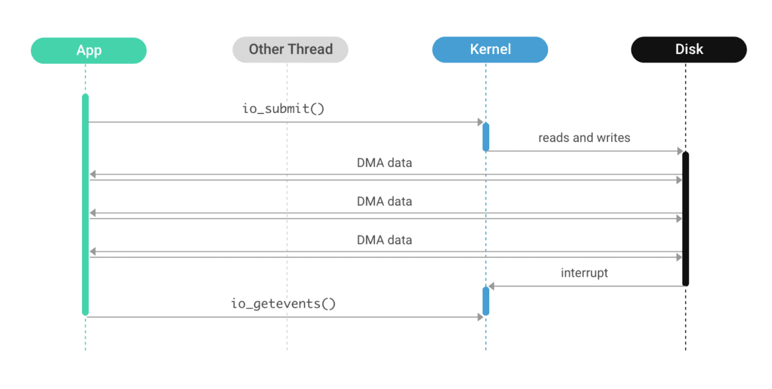 This is how the io_uring() API appeared. It provides the same facilities as what AIO does, but in a much more convenient and performant way (also it has notably better documentation). Without diving into implementation details, let’s just say that it exists and is preferred over the legacy AIO.